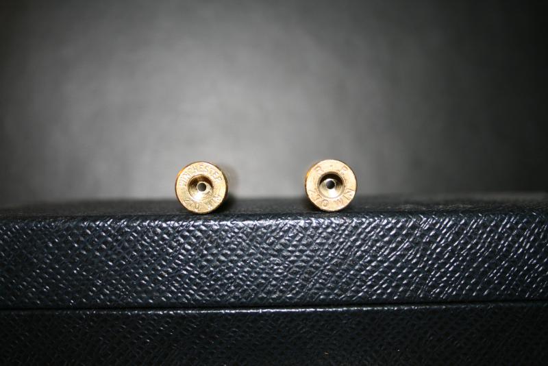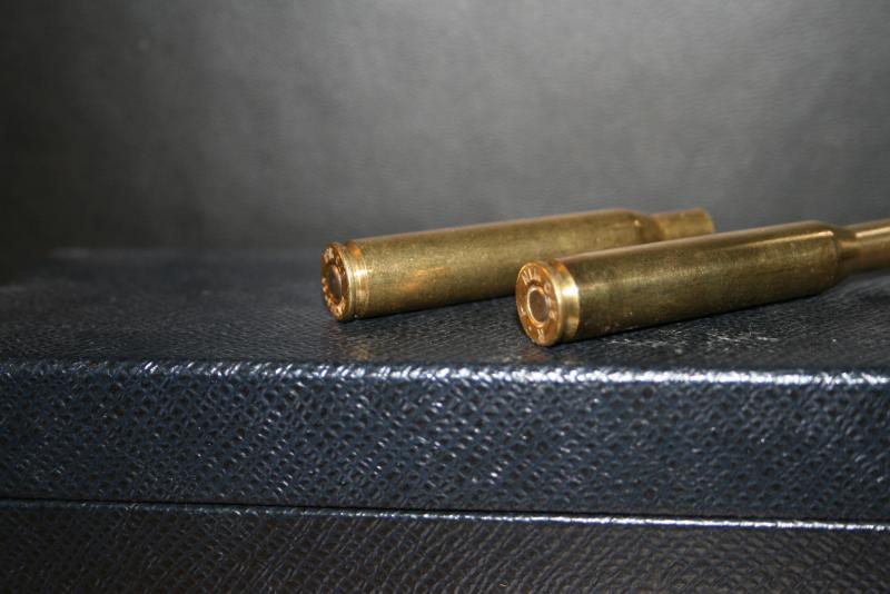 En la tercera foto se ven dos vainas, una Remington y una Winchester. La R-P es hermana de la de la primera foto y la Winchester es de una bolsa de vainas para recargar, sin tiros. A las dos ya les he igualado el bolsillo del pistón, como mostré al principio del tutorial. Voy a hacer la misma carga en las dos. En principio no se espera que la Winchester arroje la misma precisión que la Remington porque es absolutamente nueva. Pero claro, nunca se sabe ...
