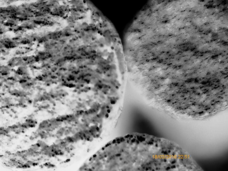 Os pongo unas fotos tomadas a través de un microscopio digital, adquirido últimamente para investigación friki jeje estos son unos granos de CBS1M (creo que están 200 aumentos) ya pondré otras fotos de cosas relacionadas.. la primera foto es un par de granos en negativo para contrastar, la segunda los mismo granos a color y la tercera un grano a color. lo que si se ve en este inframundo son las diferencias de los granos así como la textura y composición parece una tontería pero seguro que afecta a la vivacidad de la pólvora en cuestión ya que cada grano varia bastante cuando tenga mas tiempo y experiencia con el micro ya pondré mas granos y comparaciones con otros.. los colores son los propios de las muestras analizadas (no esta procesado)..