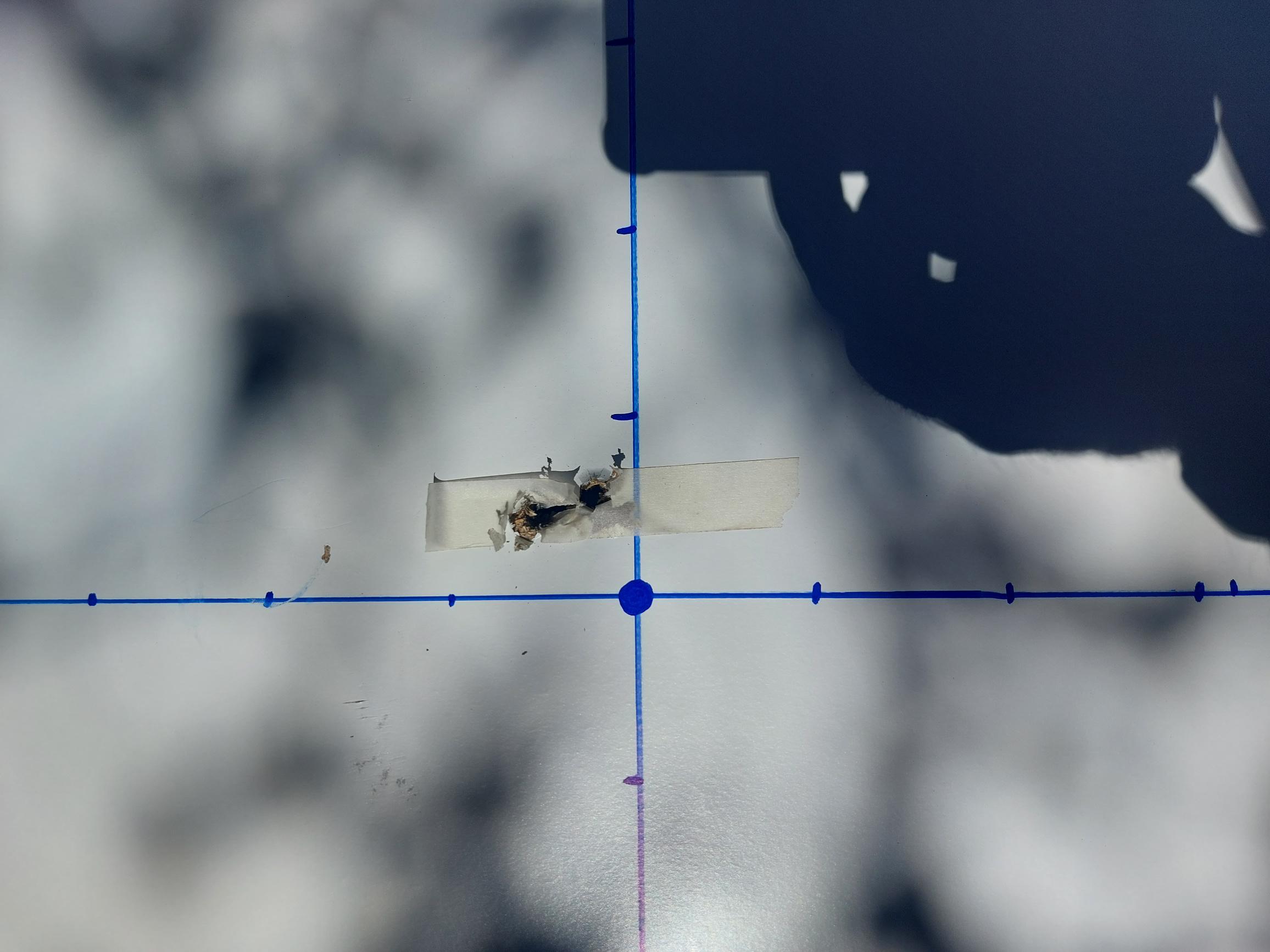 Os puedo decir que nunca con munición comercial había obtenido una agrupación tan buena. Las marcas de la diana son cada 5 cm