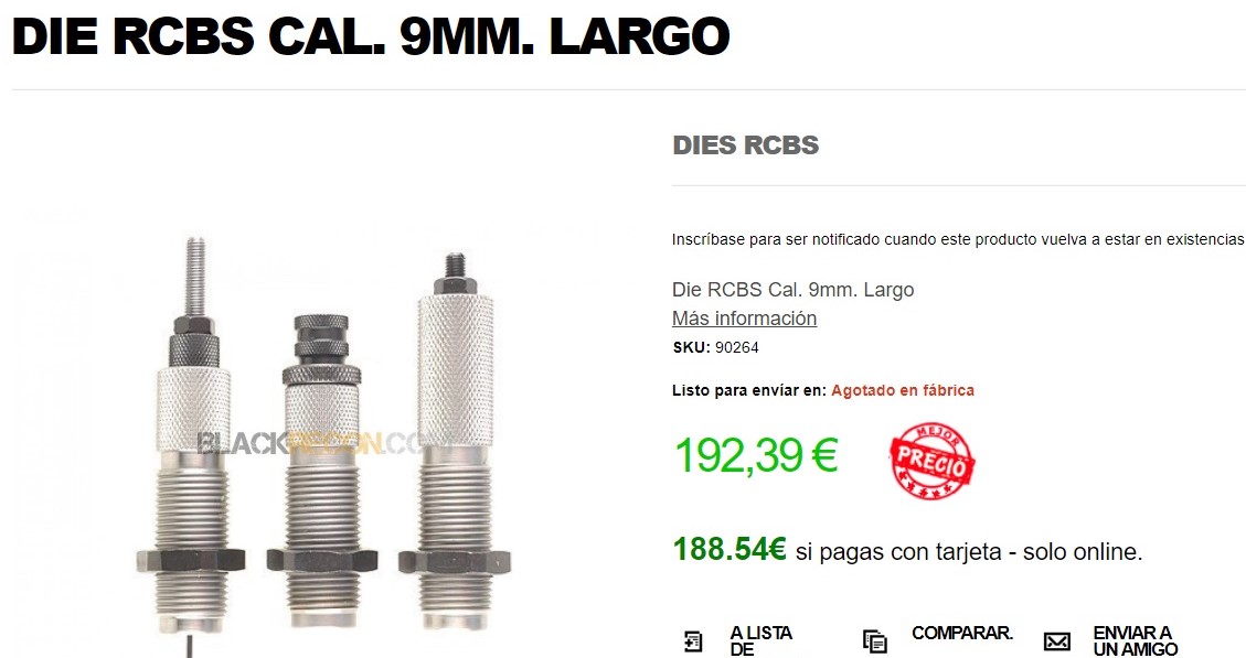 No debe ser lo mismo usar un die que otro porque si no RCBS no cobraría lo que cobra por los dies específicos del 9 largo. Y es imposible encontrar de otras marcas por menos de 100/110€