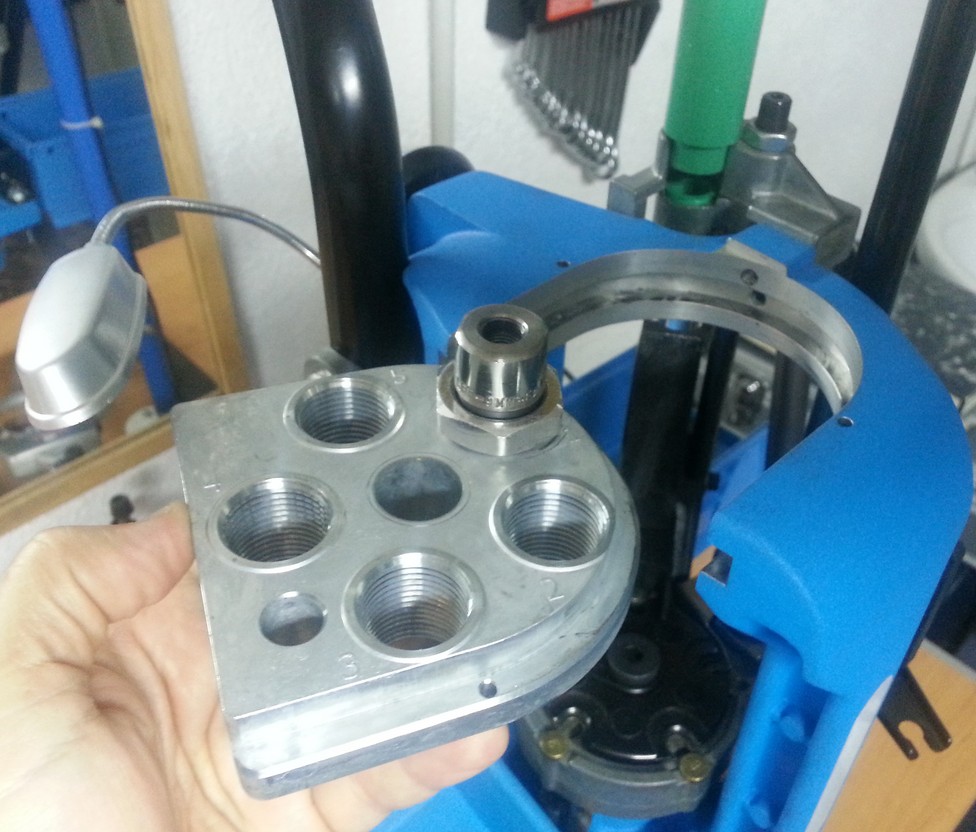 Alternativas a las semiprogresivas de Lee, en España, haber, hay pocas. Creo haber visto en Armería Izquierdo alguna Rock Chucker (creo) pero son de avance manual. En las Lee, son auto-indexables, es decir la torreta gira sola cuando se le da a la palanca. ¿Ventajas sobre una monoestación?. Pues velocidad, mayormente. Con cuatro golpes de palanca hay un cartucho terminado pero no hay que andar cambiando dies, y se va a un ritmo mucho más alto.