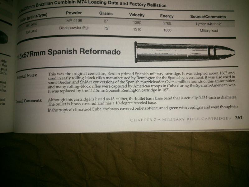 5º De lo dicho se deduce que bajo la denominación .43 Spanish uno puede encontrar calibres ligeramente diferentes que van desde el 11.15 al 11.65 de algunos Patria argentinos (nominalmente 45-70); por no hablar de los calibres escandinavos. No creo que nadie tenga una joya de los primeros 10000 comprados a USA en calibre .58 (si alguien lo posee se lo compro ya).