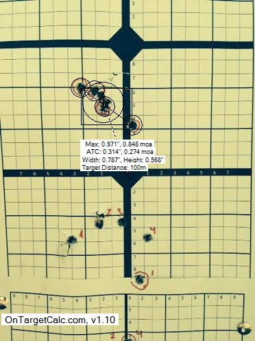 Hay otra cosa... Sólo un grupo, de 3, 4 o 5 tiros no es del todo representativo. A veces puede salirte un grupo bueno (o muy bueno) de chiripa... incluso apuntar mal y que el tiro vaya a caer justo al lado de los otros.