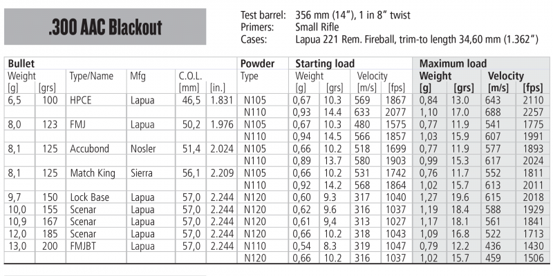 Os he leído que la Vitavhuori N110 es ideal para este calibre tan caprichoso, pero según las tablas de este fabricante también se puede utilizar la N105 con algunos grs menos, supongo que al ser más rápida que la N110.