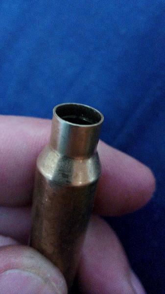 Antes de empezar a recargar estuve practicando bastante con vainas que no iba a utilizar para llegado el momento no dar pasos en falso. Pues bien, se me escapó un detalle. Dispongo de un RCBS Trim Pro 2 y había estado paracticando con él pero no caí en la cuenta de comprobar el efecto del pilot en el cuello de la vaina. Los pilot están bastante mal hechos presentan ciertas excentricidades y además ajustan con cierta holgura en el recortador, lo que acrecienta la excentricidad. El resultado es el que vais a ver, cuellos marcados en su interior y vainas a la basura. Estoy a la espera de que un amigo tornero me haga un pilot en condiciones. Según me comentan, en breve llegará a Amazon Europa la marca McJ, la cual parece tener bastante buena pinta.