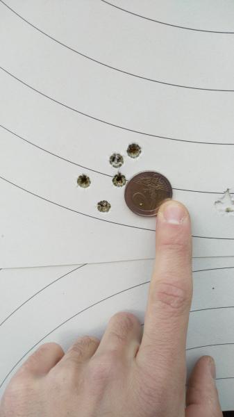 A mi ya me ha llegado el alza "micrometrica" y ya está a tiro. He conseguido hacer un grupo parecido al que puse, y ahora a ver si soy capaz de repetirlo con chaqueta y guante. Aquí la muestra de los inicios del tendido: