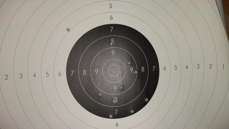 He tirado apoyado en una torreta y en un saquete, a 100 metros. Teniendo en cuenta que el disparador es duro de narices, creo que es un buen grupo