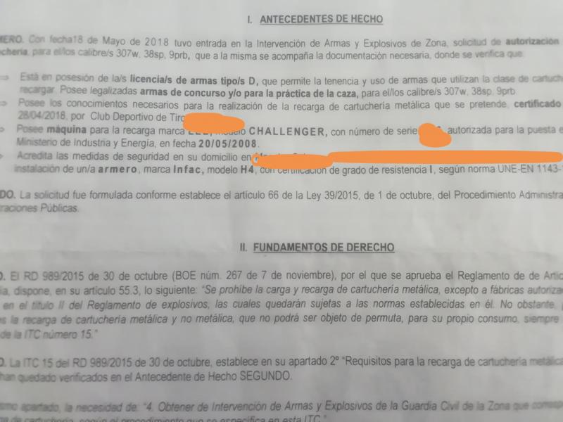 para tener la autorización de recarga de munición metálica tienes que tener rifle y para tener rifle tienes que tener un armero