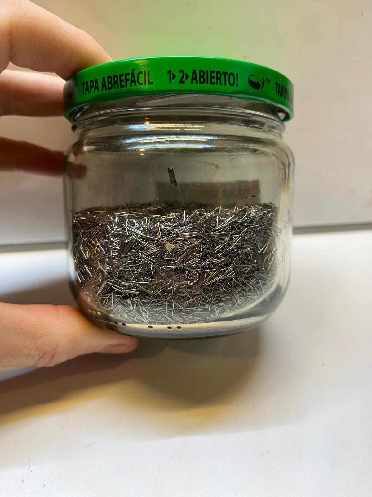 la cantidad es muy poca es medio kilo o menos y los pines no son los adecuados por que solemos comprar los muy finos que se usan en joyeria para los tambores Magneticos
