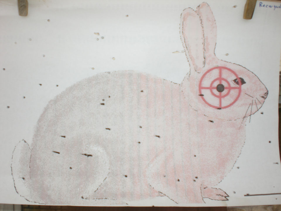 Buen trabajo pero permíteme una sugerencia: separa el blanco de cualquier apoyo duro que lo apantalle por detrás pues algunos de los impactos pueden ser de salida después de rebotar (los alargados) en vez de ser de entrada con lo que puedes estar engañándote sobre la dispersión y número de impactos.