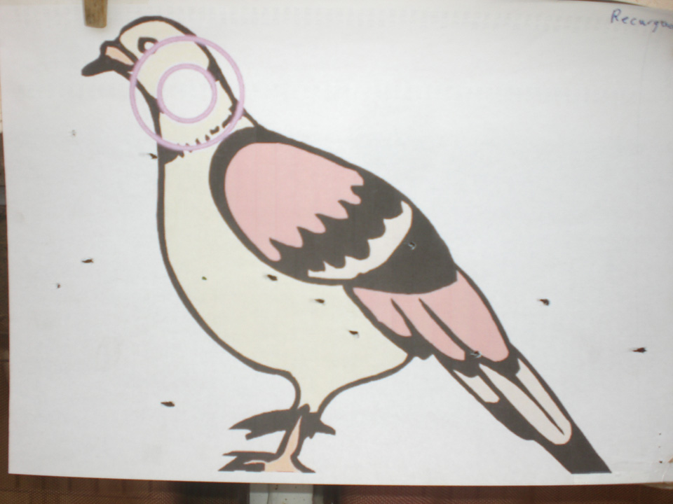 Despues de muchas pruebas, con las tres ultimas balas de hoy, a 50m y con un blanco nuevo aqui estan los resultados.