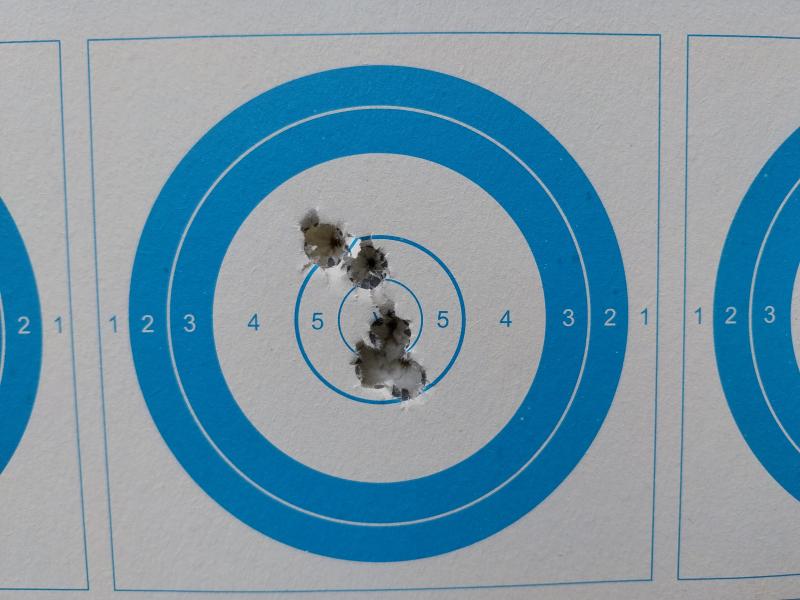 Me he quedado en 710m/s con 18,0 grains de N110 y la vmax de 110grains. Aun sin síntomas de sobrepresión pero no quiero jugármela ya que he conseguido el objetivo, además con un grupo más que decente, a mi parecer, para este calibre y 100 metros
