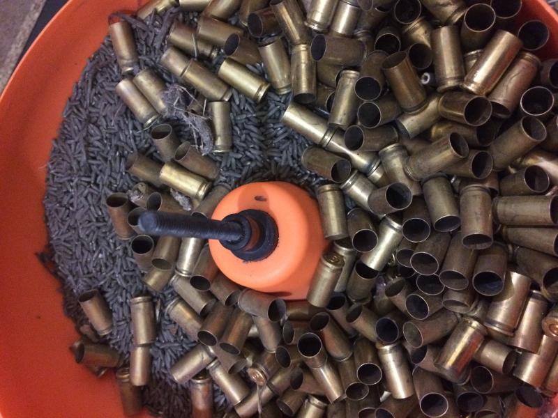 Disparo más o menos 400 municiones por semana. Entreno en IDPA los jueves y sábados. Al final del día recogemos nuestras vainas usadas y sucia. En este período está lloviendo (vivo en Italia) y las vainas están muy sucias. Las pongo directamente en el Lyman.