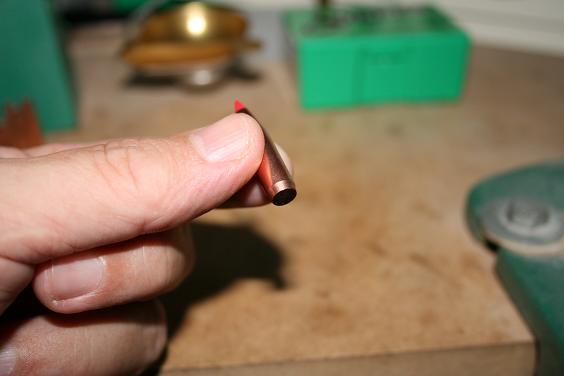 La otra foto muestra lo práctico que es asentar una bala Boat Tail, pues ella sola se queda parada.