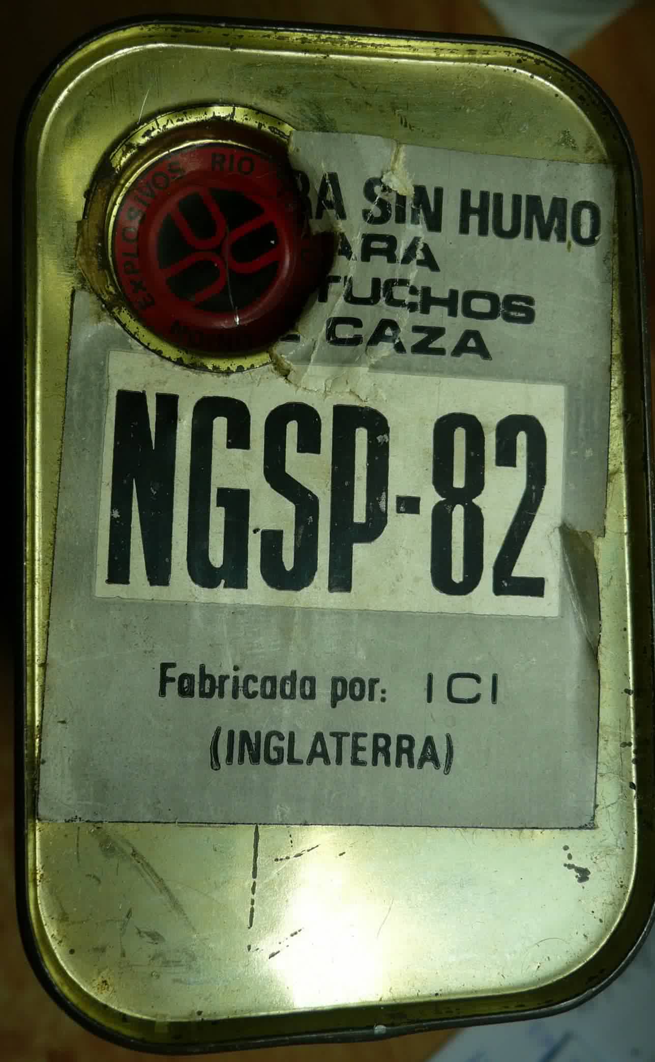 Según las fotos que os adjunto dice que "pólvora sin humo para cartuchos de caza" y dice ademas "Fabricado por ICI en Inglaterra.