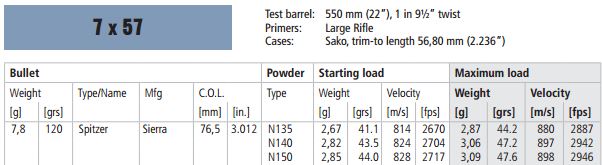 Estas ultimas para el mauser oviedo cañon de 51 cm. me agrupan bien a cualquier distancia y matan todo sin problemas. es una carga un poco moderada, pero va perfecta.