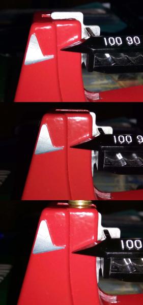 ya que al efectuarlo con el tercer die, la vaina llega a la zona del die que esta para grimpar y efectua una presion sobre la vaina hacia abajo,