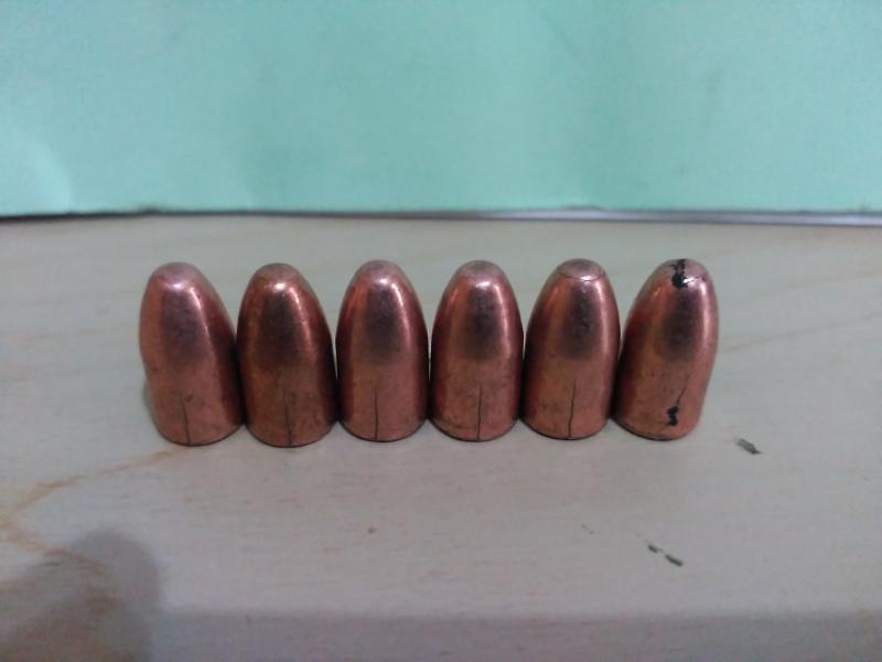 En mi caso le compré personalmente dos bolsas para el 9 mm cobreadas trococónicas y ojivales; y encontrar dos puntas iguales tanto en peso como en forma era pura coicidencia !!!!