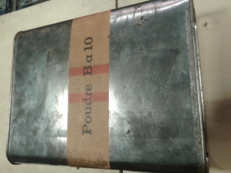 . Tipico envase en que vendian polvora que provenia de bidones de 25kg y que la armeria lo envasaba en ellos para venderlos al por menor. Tengo uno igual pero de A1, y el problema es que con el paso de los años se oxidó el interior por lo que la polvora quedó mezclada con el polvillo marrón del óxido. Eso si, una vez separado de la pólvora en la medida de lo posible, la pólvora quema satisfactoriamente a dia de hoy.