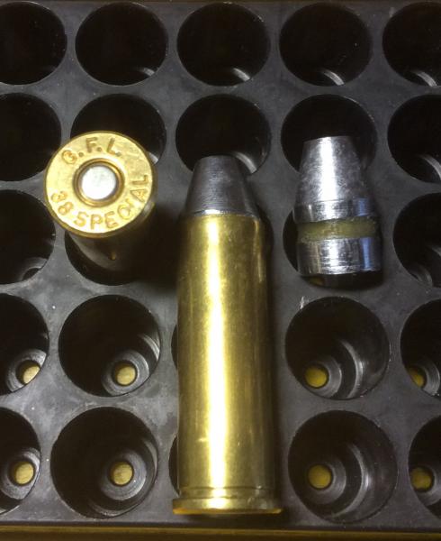 La recarga consiste en realizar muchas pruebas dentro de unos márgenes de seguridad con conocimientos adecuados. El usar proyectiles del calibre 9 mm. Pb para el calibre 38 spl. no tiene más ciencia que las medidas de las gargantas de los alveolos del revólver dónde pretendas usar esos cartuchos montados.