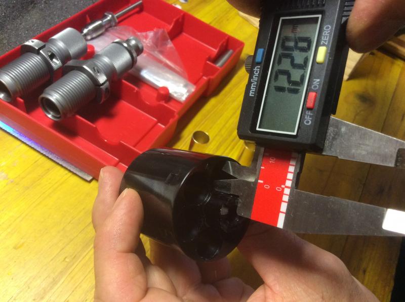 La indicación de las medidas es para ver si el die deja una medida correcta en la vaina o no, haciendo caso omiso del hecho del escalón.