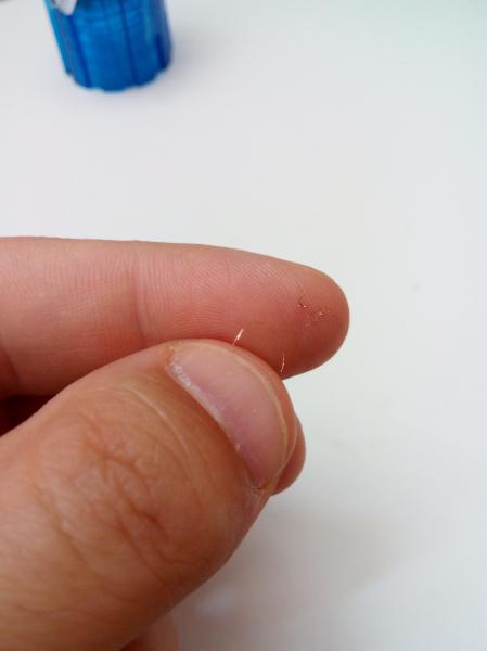 -otra opcion que he pensado, es que quizas haya desbarbado mucho con el deburring tool y se cree un filo que haga de cuchilla y le saque esa rebaba a la punta. aunque esto lo veo menos probable.