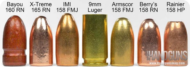 Puntas de plomo de entre 140 y 150 gn pueden tirarse perfectamente en el 9mm adecuando la carga y el ltc a ellas y con un calibre como máximo de .357 según la teoría (para punta de plomo hasta dos milésimas mas del calibre nominal), en la practica, según que pistola y previa medida interior del cañón, no es raro encontrar cañones del 9mm que pueden perfectamente tirar puntas del .358 e incluso algo mas sin ningún problema.
