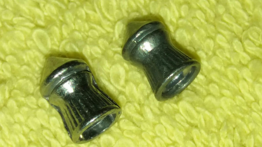 Os dejo una foto de los balines que estaba usando y de los nuevos, como podeis observar, el de la izquierda tiene grandes rebabas laterales y sospecho que el diametro ha debido cambiar algo porque, como digo, cuesta mucho meterlos. El de la derecha es de una lata mas vieja y todo entran con suavidad, como debe ser, ademas no se ven rebabas y en general se ve mejor acabado.