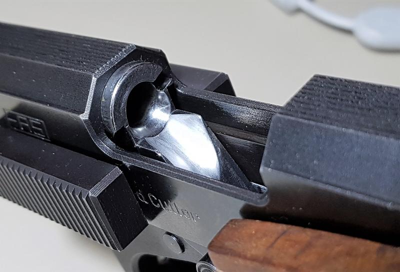 Lo del crimp lo tengo claro, se soluciona no crimpado más, sino puliendo las rampas de alimentación, la parte del armazón (del bloque del gatillo en realidad) y la parte del cañón, ya lo he hecho con lijas crecientes desde grano 180, pasando por 280, 360, 500, 600 y 1000, finalmente el acabado ha sido con lanilla de acero, con lo que me ha quedado un espejo perfecto.