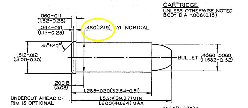 Buscando en foros americanos encuentro que las recamaras de los .45 Colt son muy grandes, eso unido a que recargo con un set de dies de lee, concretamente el deluxe, que por lo que parece y compruebo recalibra demasiado, podría ser el motivo de la rotura, que al expandirse por la presión y tener demasiado espacio para expandirse se rajan, la rotura es exactamente por el mismo sitio.