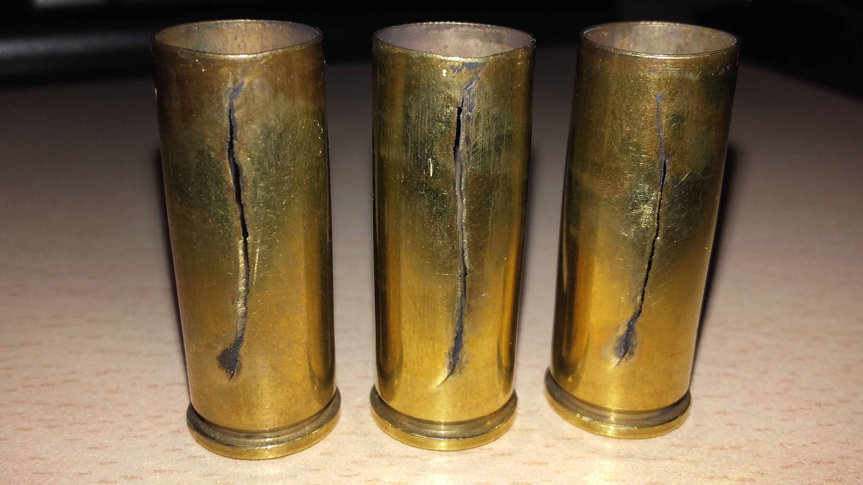 El cartucho es un 7,62x39, la foto no es mia pq las tire y no tengo fotos, pero es exactamente igual a la grieta de la vaina de la izquierda y en mi caso son vainas de S&B