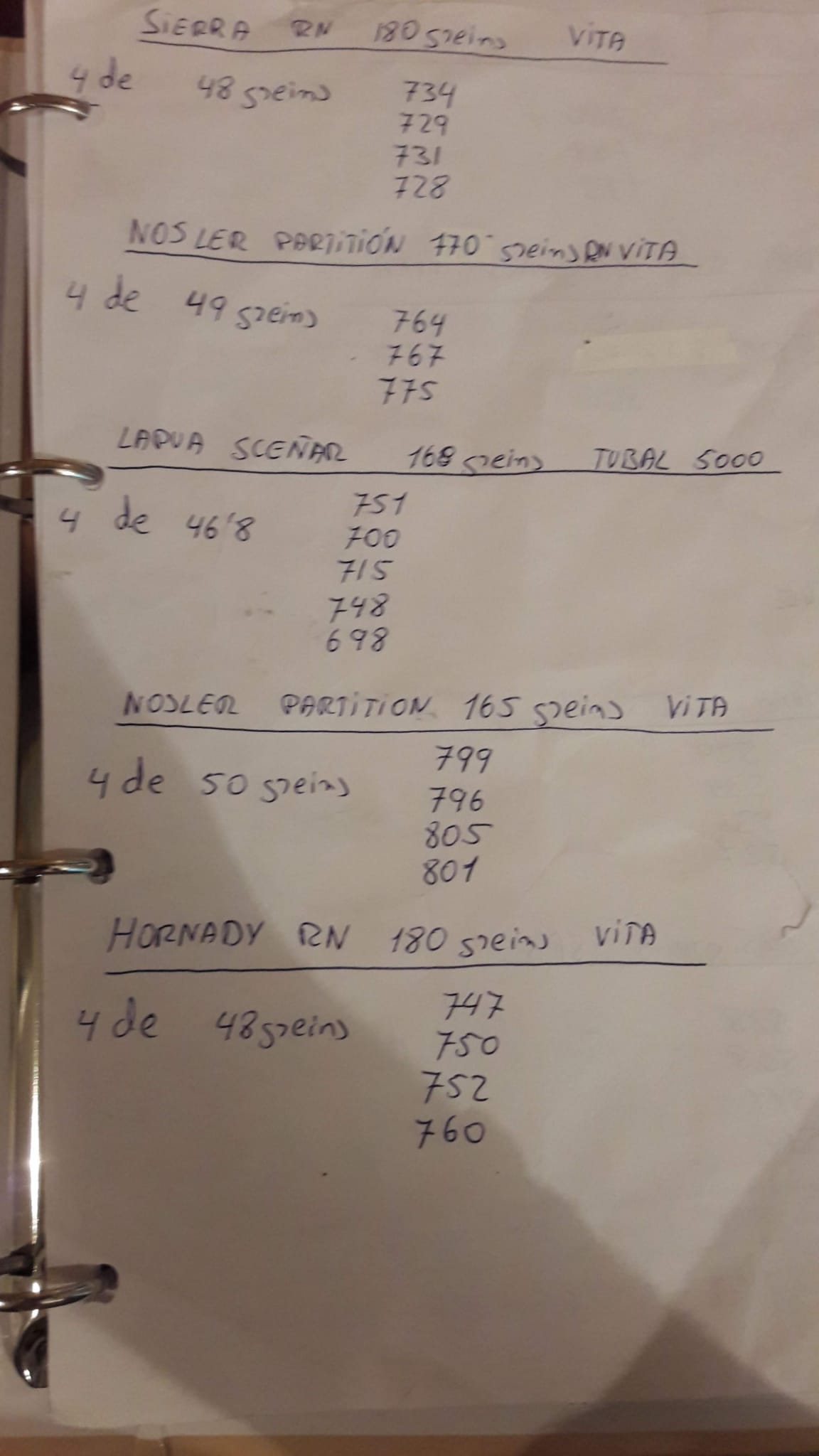 Antes cargaba proyectiles de 150 y de 180 grains para el 30 06, cuando aún no se comercializaban los proyectiles de 165 grains, ahora estoy derivando desde "cero" hacia los proyectiles de 165 grains ya que, ni tengo experiencia con su peso ni con la pólvora VihtaVuori N550, el tiempo y el monte me dirán si mereció la pena el cambio de peso en los proyectiles.