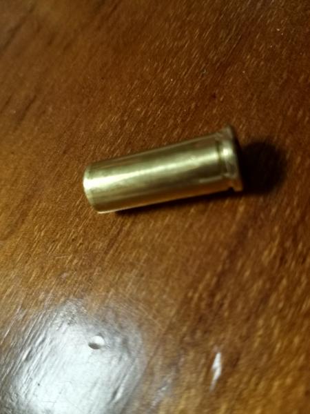 Estoy dejando la vaina ligerísimamente abocardada, lo justo para que entre en los alveolos, pensando exclusivamente en la fijación de la munición dentro del alveolo. Decese modo, la vauna no tiende a pendulear dentro del alveolo, ya que desde el headspace hay cada mm menos contacto con el alveolo. Con esa medida fijo la munición en su extremo contra la pared del alveolo. ¿Qué beneficio tiene? El mejor alineamiento con el cono de forzadura. Esto se me ocurrió recargando munición de precisión para arma larga con bala de plomo y lo trasladé al revólver. Nunca lo hice en mi munición del .32 para mi S&W 16-4, pero iba muy bien con un escueto crimpado en el aire, como hago siempre con ese calibre en mis saut.