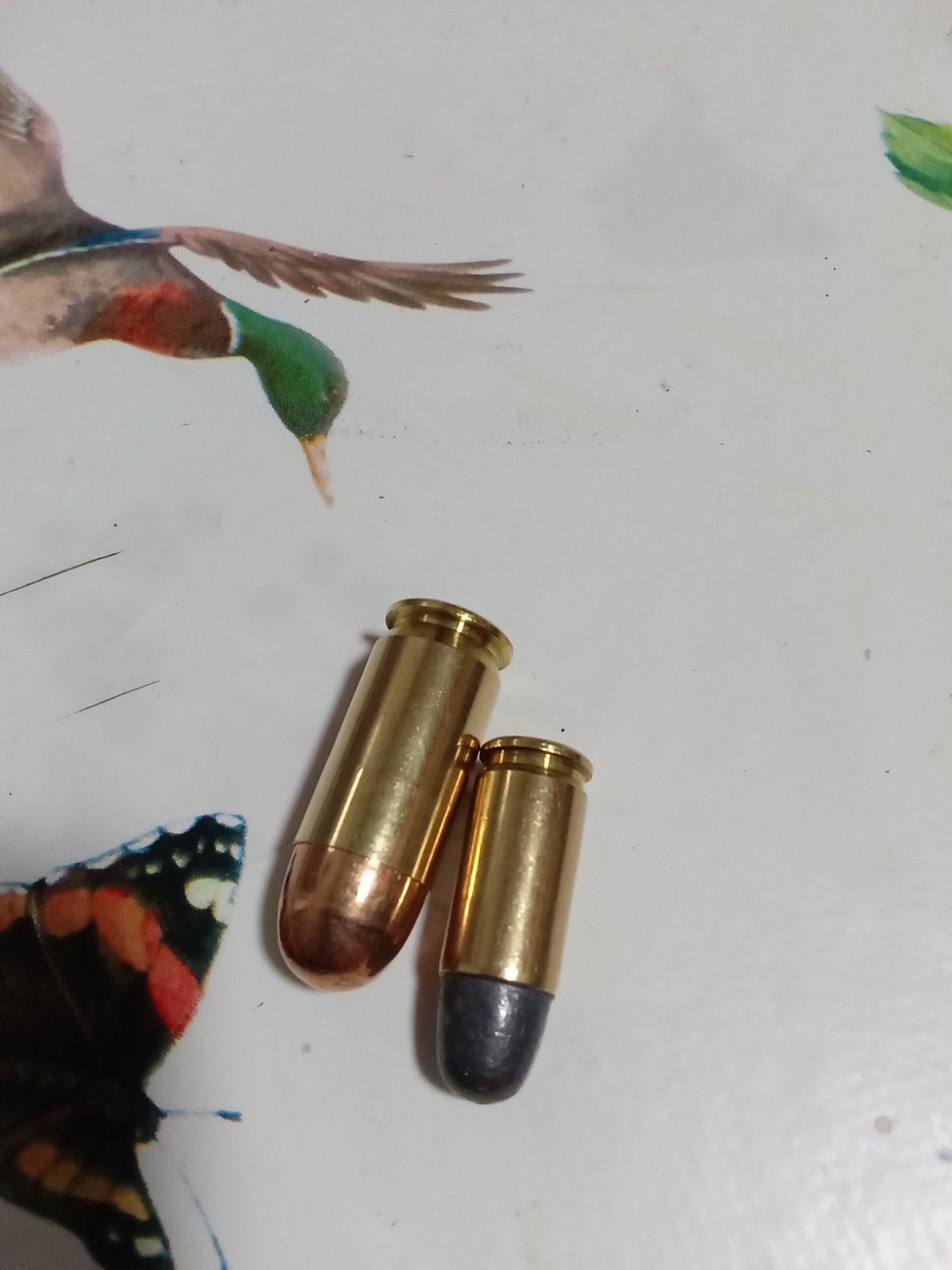 En foto, 9 mm p y 45 acp, factory, de PRVI...observese cero crimp en 45...y muy ligero en plomo 9mm..ligerito ligerito...