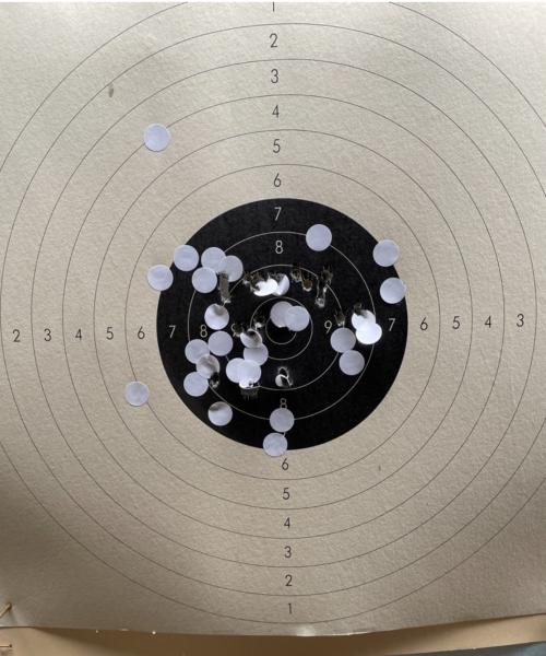 Estuve por probar municion comercial sellier&bellot de 91 grains que creo que debe dar mejor agrupación pero no las he podido conseguir en mi armería y en otras supone un engorro por tener que ir a la I.A. a recogerlas.