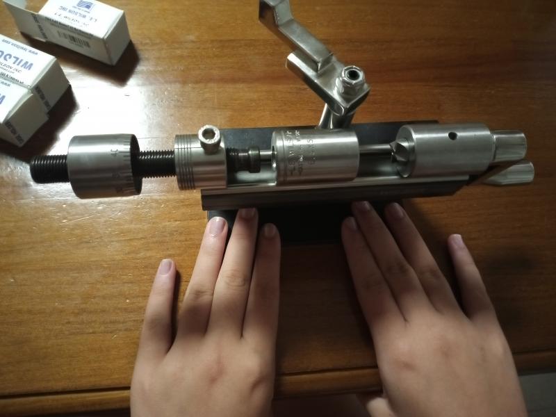 El Wilson es mi favorito, aunque no los conozco absolutamente todos. Supera a los tradicionales de pilot con una mano atada a la espalda. Éste se basa en otra manera de hacer las cosas. Por ejemplo, los holders de la mayoría de calibres se ofrecen para vaina disparada o sin disparar. Eso te da una ventaja enorme si quieres aprovechar el piroformado y recalibrar sólo cuello. Además, con el mismo sistema, quitándole la pieza que lleva los dientes y poniéndole un escariador interior puedes igualar los cuellos por dentro.