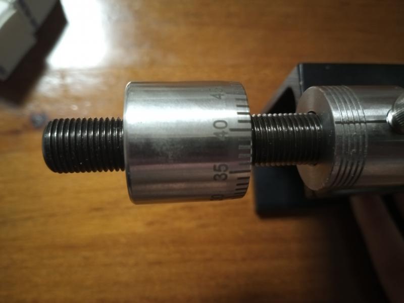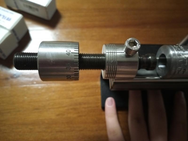 Estaba puesto para la medida de un cartucho más largo, sea mi 35 Whelen o mi 270 Win, no recuerdo. Pero se ajusta al que uno use con la simple rosca y tornillo de fijación.