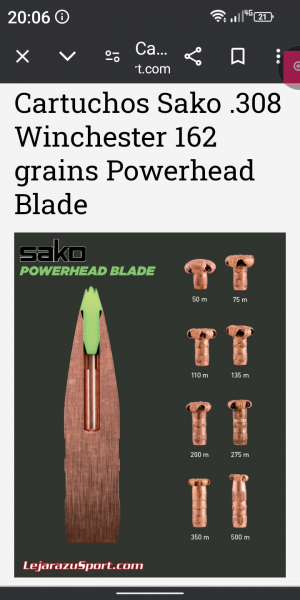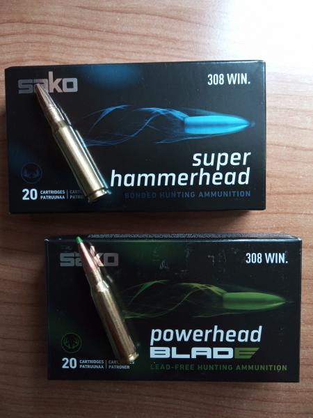Este año voy a usar un cerrojo en 308 para batida y ocasionalmente esperas.Esta munición de Sako es muy buena opción.Las Superhammerhead 180 son soldadas(bonded) y las Powerhead 162 son monolíticas con muy buena expansión.Cualquiera de las dos,te va a funcionar.