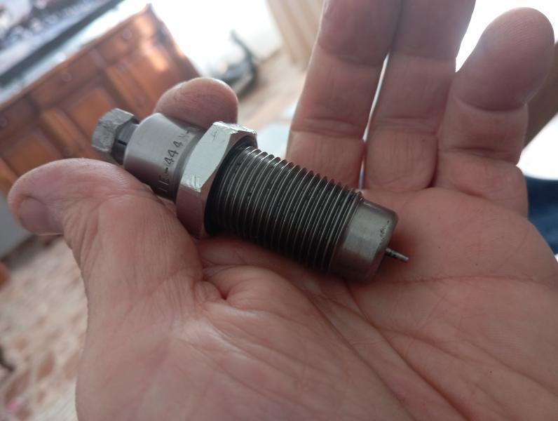 - El que trae la aguja es el que recalibra y saca el pistón, coloca el Shell holder en la prensa y lo subes hasta arriba, roscas el die hasta que toque y lo aflojas lo justo para que entre un folio " un pelo polla ", aquí pones la contratuerca y aprietas contra el Bushing.