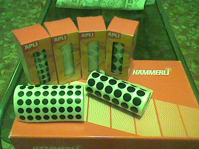 Los parches de 20 mm de diametro, vienen con 1.770 unidades la caja, el precio el mismo 2,5€ aproximadamente.