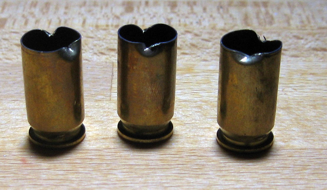 Por cierto, en las pruebas de velocidad me ha machacado la boca de tres vainas (de 20 que he disparado) Las tres han "muerto" con las cargas de 3,6 y 3,7, con las flojas no se ha roto ninguna. La pistola es una Norinco 1911 A1, con cañón de 5", claro. Voy a intentar poner una foto a ver si me podéis decir a qué se debe. Tienen un golpe que debe ser indicativo del motivo, pero yo no lo veo. No sé si será de la carga, del muelle, del expulsor ...