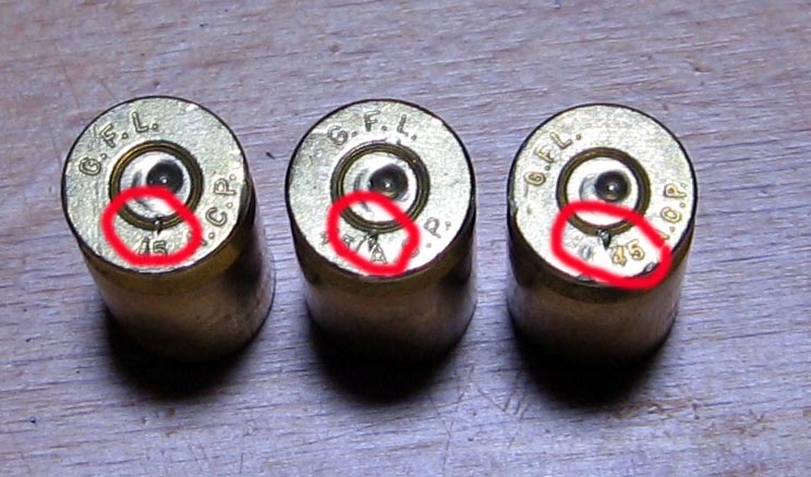 En la última foto he rodeado en rojo unas marcas que no aparecen en las vainas que no se han estropeado, sólo en estas tres. Creo que es del expulsor.