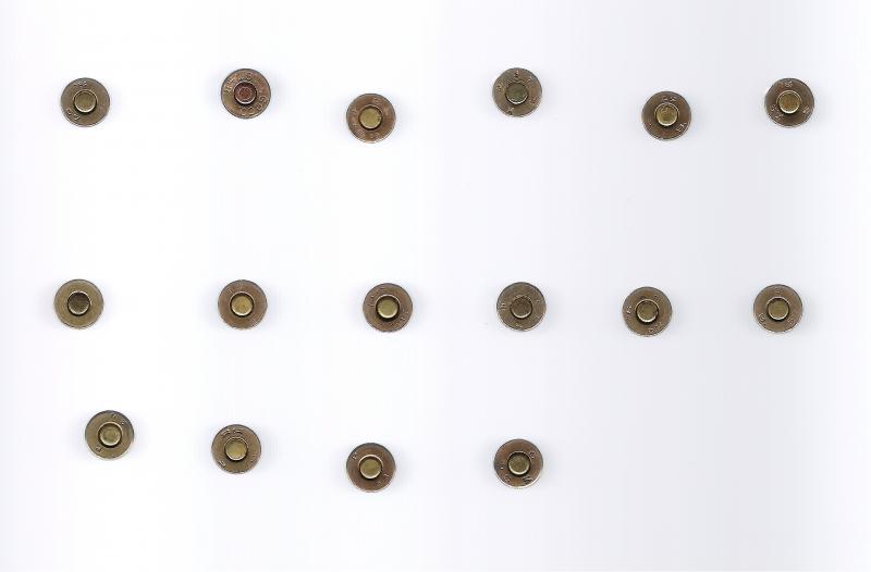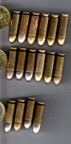 Un muestra de los culotes, por si son de interés de algún coleccionista. Unos tienen el proyectil cobreado y varios plateado. A mí no me llama la atención la coleccion de cartuchos.
