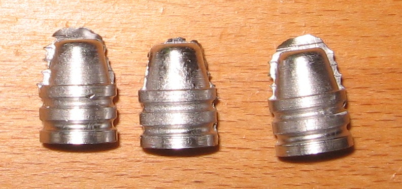 Ya por fín me puse a fundir algunas puntas de varios tipos que necesitaba, y me ocurrió lo que os cuento con un molde Lyman para punta SWC 45ACP de 200 gr: