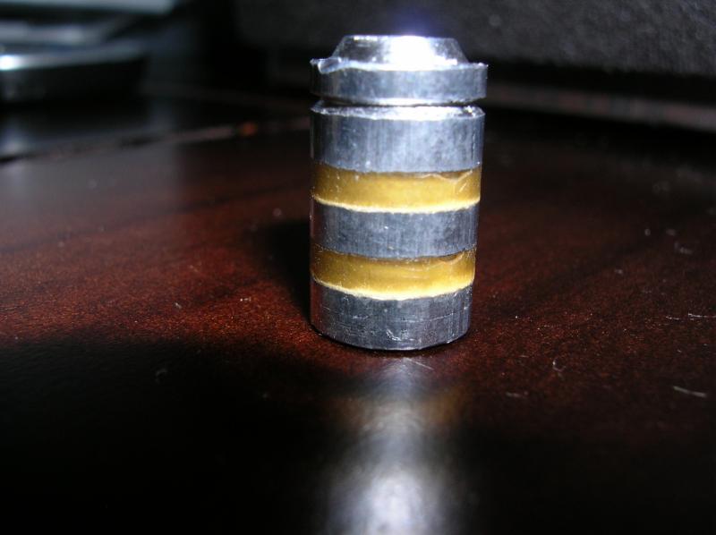 La grasa que usas (Mezclas raras de cera de abeja , parafina y molicote) no me convence, sobre todo si consigues fácil la cera de abeja, mezclala en caliente con Lee alox al 50% en peso y obtendrás un excelente lubrificante con menos complicaciones. cuando lo tengas bien mezclado en caliente lo viertes en la recalibradora removiendo mientras endurece para que no asiente por capas y a darle sin miedo que no fallarás. El alox puedes comprarlo más barato en USA, te lo mandan a casa sin problemas desde varios sitios, yo lo compro aquí: