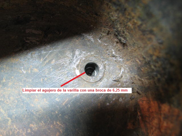 La broca de 6,25mm tenía el corte casi plano para no dañar la forma conica de la valvula y evitar que se estropease el cierre de la misma.