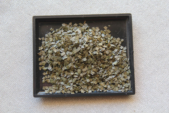 Lo que me sorprende es que digas que es "a trocitos cilíndricos, no redonda" lo que en sí mismo es algo confuso o contradictorio, y de color negro. La pólvora "T" era verde, a veces verdinegra, y en láminillas cuadrangulares, muy similar a la A-1 o a la que ha dado pié a este hilo.