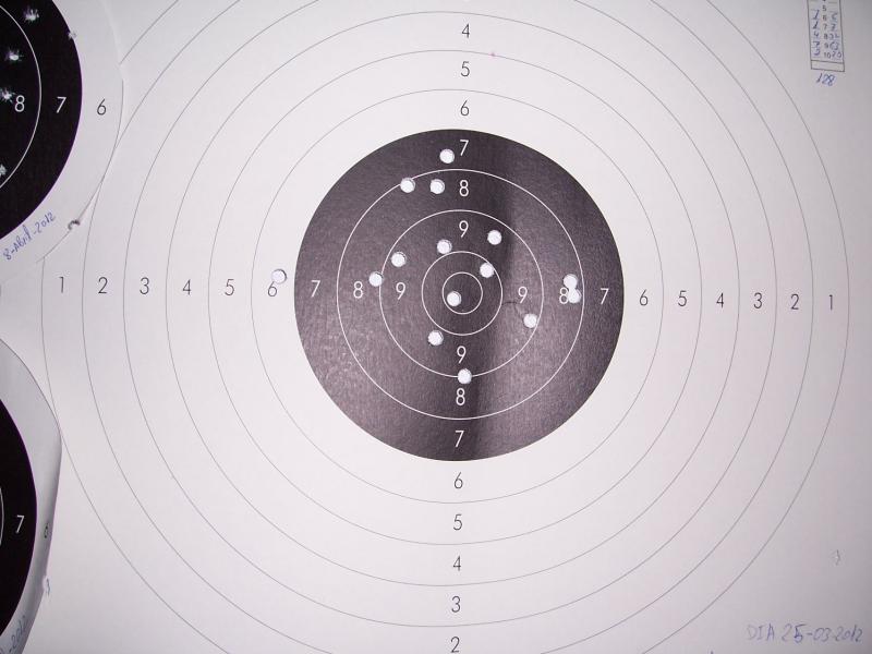 Dicho esto, tampoco va a escampar los tiros, aunque emplomará con ganas, con que le pongas cualquier cosa que pase de .355", si apuntas bien y las miras están bien, no te saldrás del negro, pero es que si ajustas el resto, no te saldrás del 10 (por causa del arma/munición).