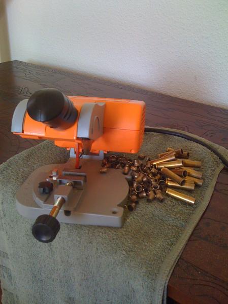 es una mini sierra de manualidades en USA se llama "mini saw cut" no llegan a 40€ se venden en tiendas de hobby o por ebay eso si cuidado que sea para 220v no 125v como son las que hay en UK o USA, con ella se adelanta mucho cortando el sobrante de las vainas luego solo queda pasarlas por el die de recalibrar y el trimado fino final y listo tenemos vaina del 300blackout..
