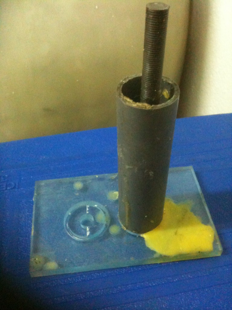 Una forma de sacarla redonda con el agujero central es:una vez puesta en el cilindro se pasa una varilla roscada (las hay de todas las medidas)de lado a lado y en uno de los lados se pone una arandela un poco mas pequeña que el diámetro del tubo y una tuerca y contratuerca por detrás, en el otro extremo una arandela mas grande que el tubo y una tuerca que al apretar arrastrará la del otro extremo con el cilindro de grasa, al final se quita la varilla roscada y...nos hemos ahorrado una pasta. Todo esto sujetando al tornillo el tubo.